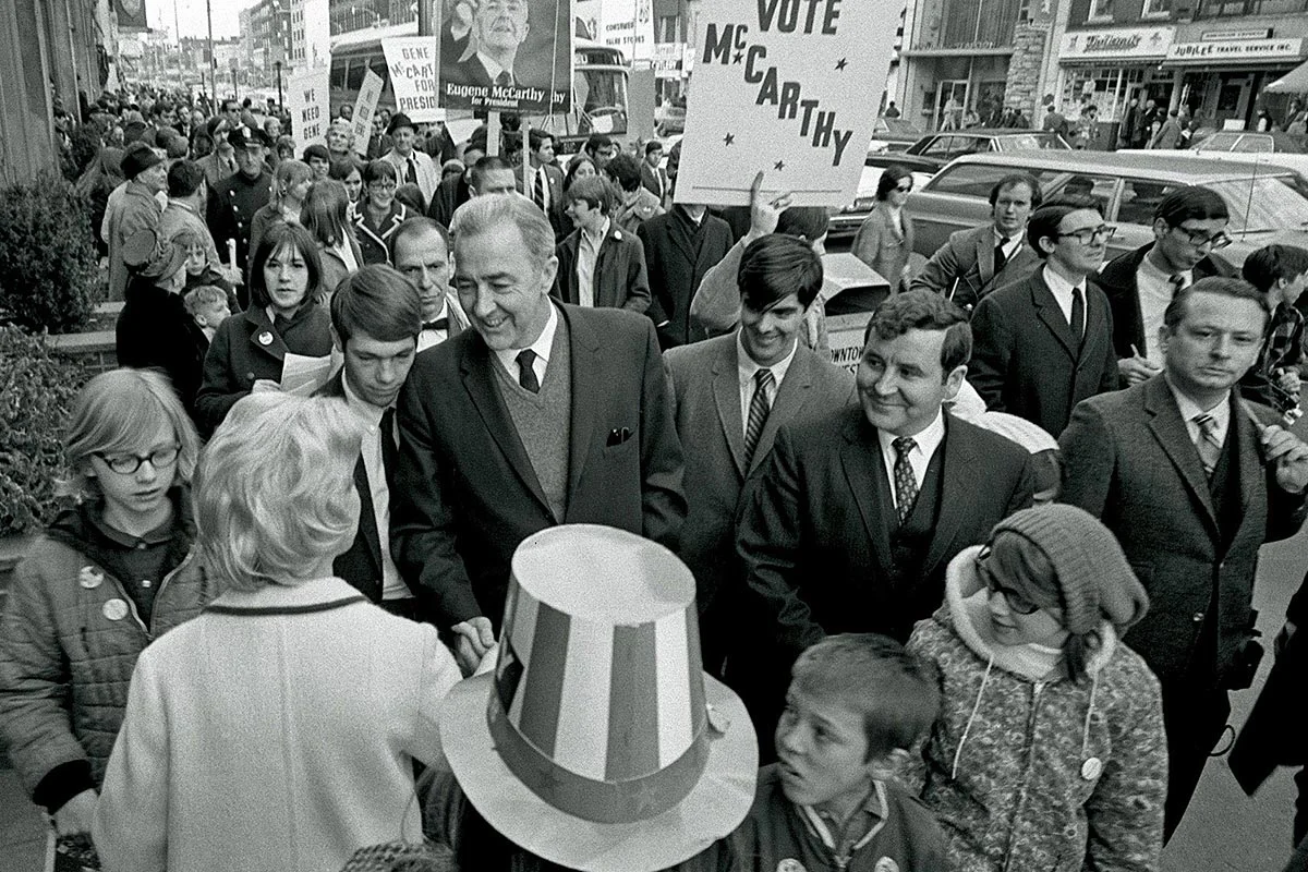 As we mark the 50th anniversary of the most tempestuous year in our country's recent history, the man who stood at the epicenter of that year's upheaval remains an enigmatic figure. Senator McCarthy's 1968 Presidential campaign was an audacious challenge to the incumbent president of his own party over the issue of the American war in Vietnam, providing a voice to grassroots movements and inspiring a new generation of citizens – especially college students – to political action and civic engagement. Yet the hope stirred by his campaign's early electrifying success was soon beset by conflict, despair and violence, as 1968 would suffer the assassinations of Martin Luther King, Jr. and Senator Robert Kennedy, the Chicago Police Riots of the Democratic Convention, and the election of Richard Nixon as President with the escalation of the war for another six years.